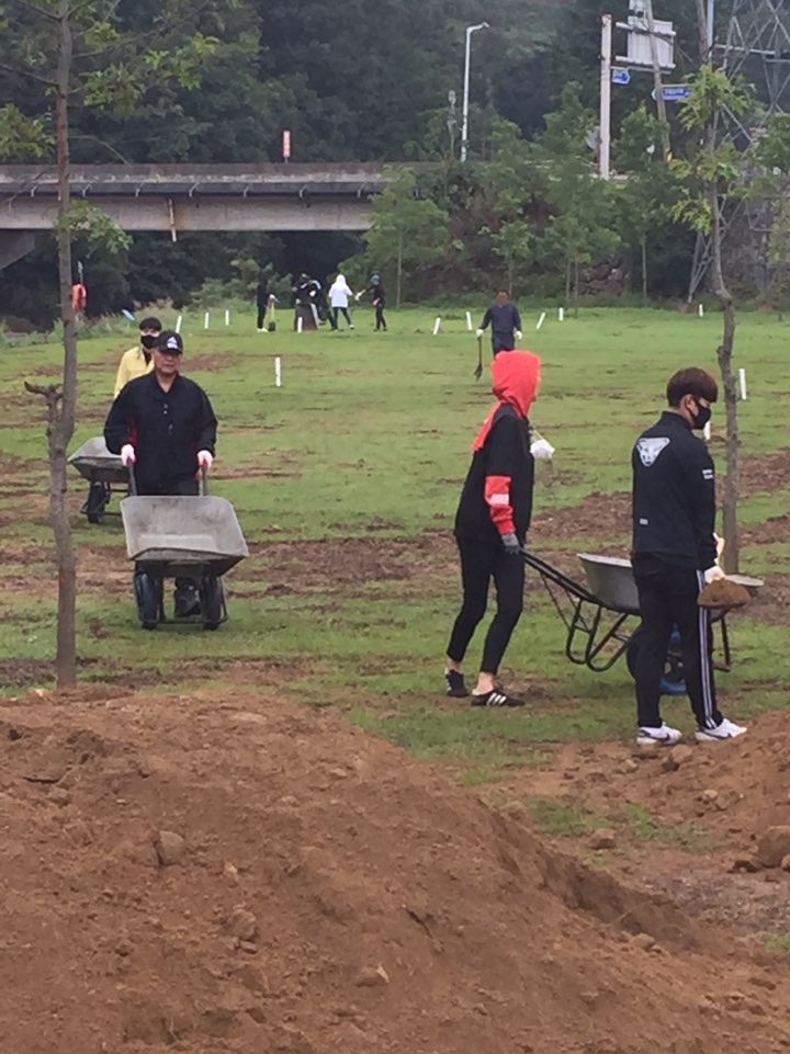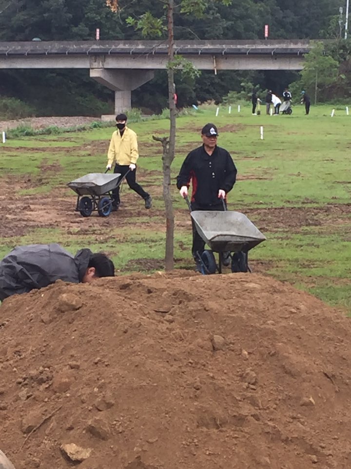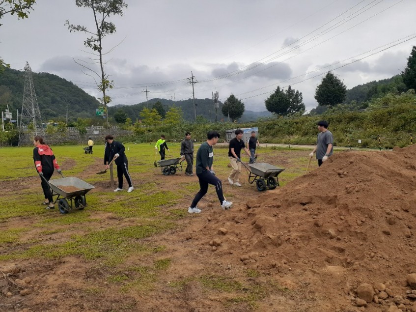 2020.9.23.(수) 삼척시 체육진흥과 직원 및 삼척시체육회 직원들이 태풍(마이삭, 하이선) 피해를 입은 체육시설(미로파크골프장)