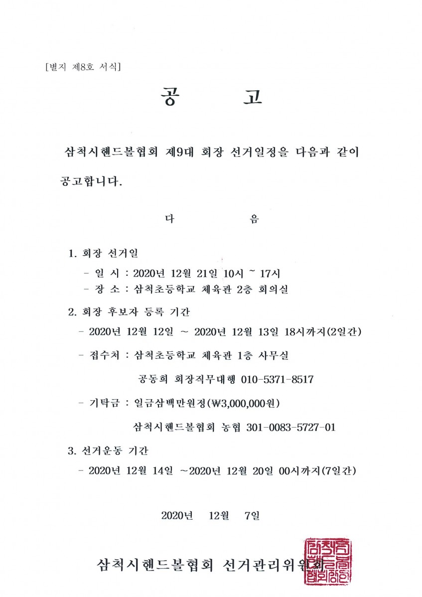 | 열람중 | 삼척시핸드볼협회 회장선거 선거일 공고 | 관리자 | 12-08 | 606 |