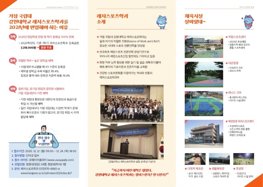 | 열람중 | 강원대학교 레저스포츠학과 2021년 편입학 정보 | 관리자 | 12-16 | 814 |